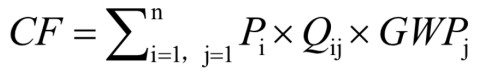 產(chǎn)品碳足跡是整個(gè)產(chǎn)品生命周期中所有活動(dòng)的所有材料、能源和廢物乘以其排放因子后再加和,其計(jì)算公式如下: